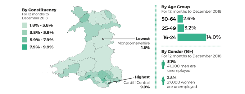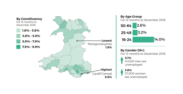 Ffeithlun yn dangos y ffigurau diweddaraf am y farchnad lafur yng Nghymru.