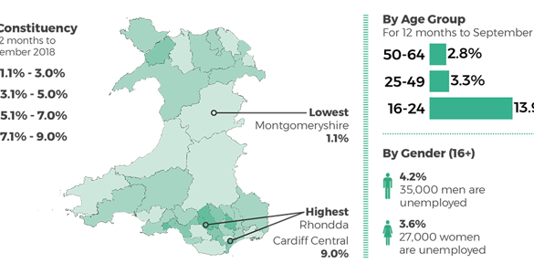 Ffeithlun yn dangos y ffigurau diweddaraf am y farchnad lafur yng Nghymru.