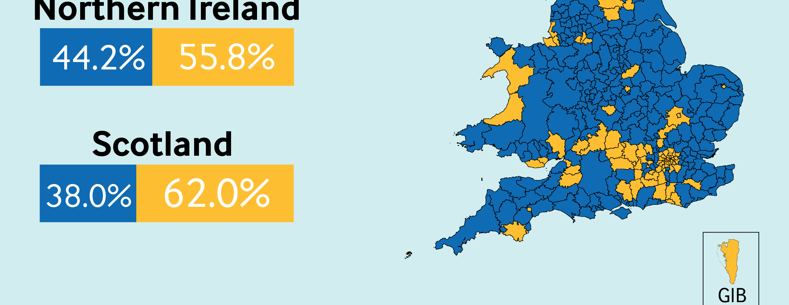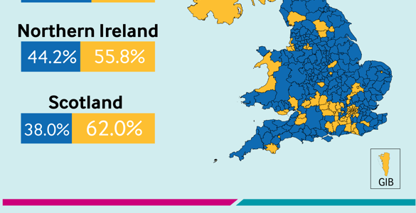 Mae’r ffeithlun isod yn rhoi dadansoddiad manwl o’r bleidlais ledled y DU, gan gynnwys canlyniadau Lloegr, Gogledd Iwerddon, yr Alban a Chymru. Rydym hefyd wedi cynnwys ffeithlun yn dangos dadansoddiad o’r bleidlais fesul awdurdod lleol yng Nghymru.