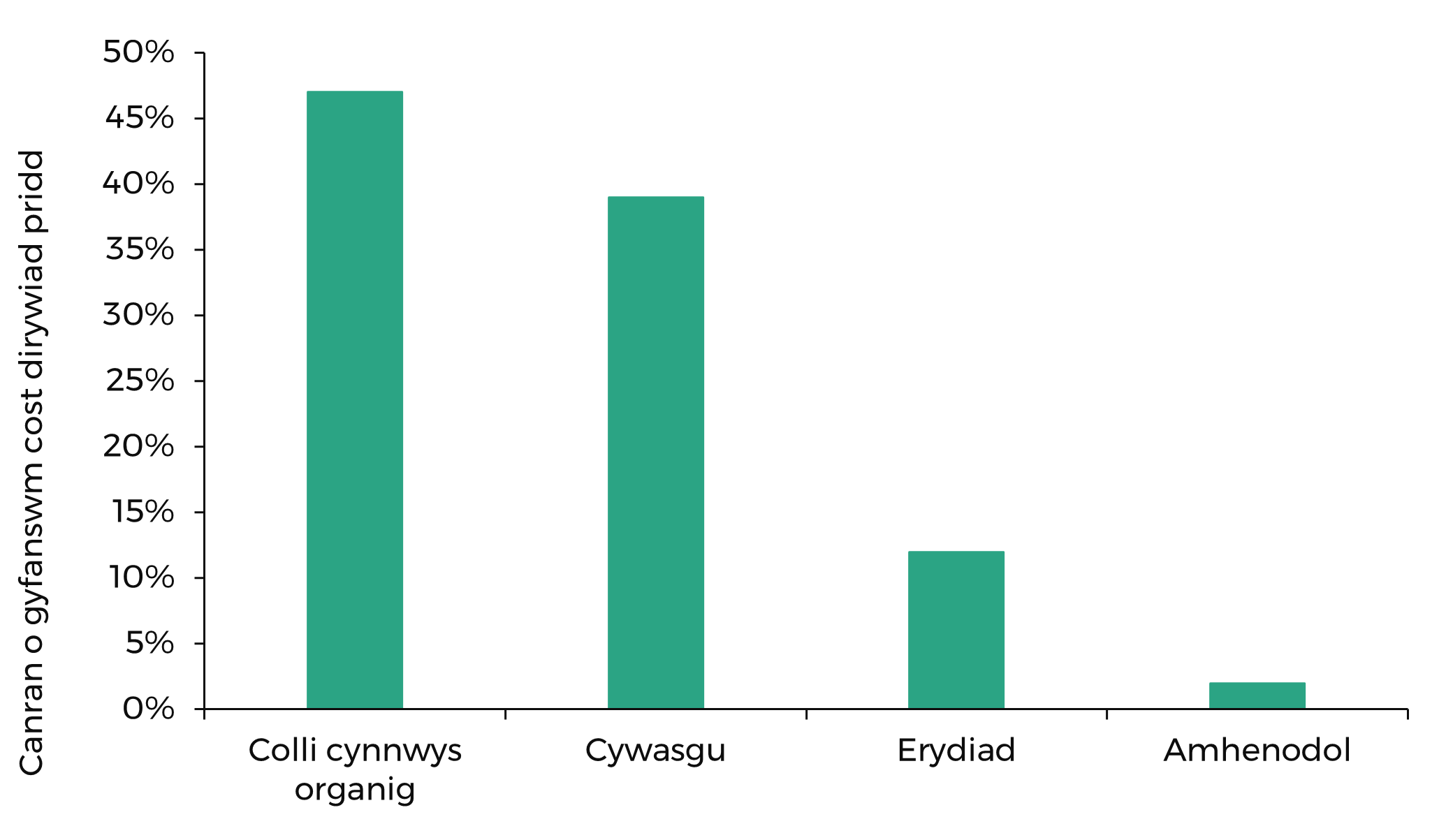 Ffigur 2 – Canran o gyfanswm cost (£1.2bn) dirywiad pridd ar draws categorïau, Data ar gyfer yr holl DU