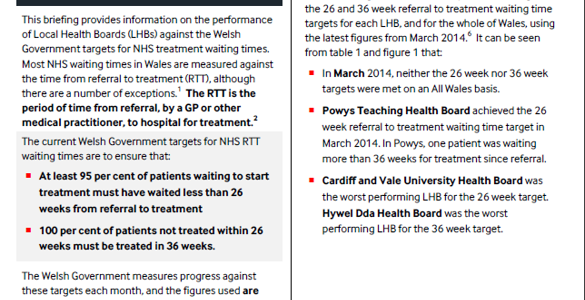 Cyhoeddiad Newydd: Amseroedd Aros rhwng Atgyfeirio a Thriniaeth yn y Gwasanaeth Iechyd Gwladol (19/05/2014)