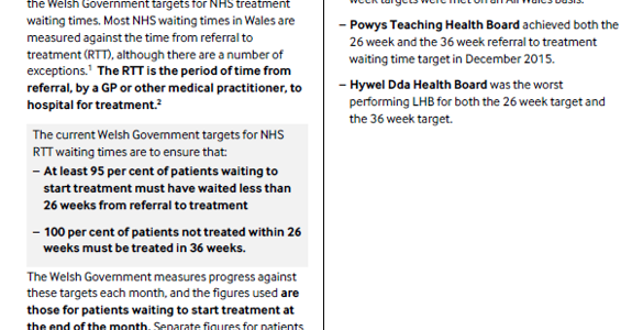 Amseroedd Aros rhwng Atgyfeirio a Thriniaeth yn y Gwasanaeth Iechyd Gwladol (PDF, 596KB)