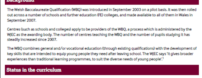 Cymhwyster Bagloriaeth CymruGwasanaeth Ymchwil Cynullaid Cenedlaethol Cymru.