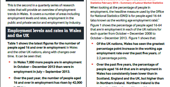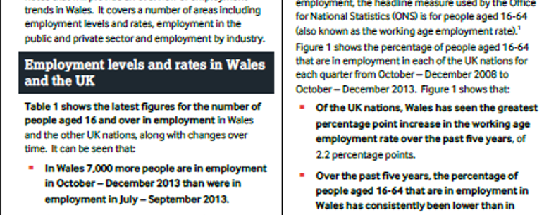 Cyhoeddiad Newydd: Gweithlu Cymru - Cyflogaeth yng Nghymru (14/03/2014)