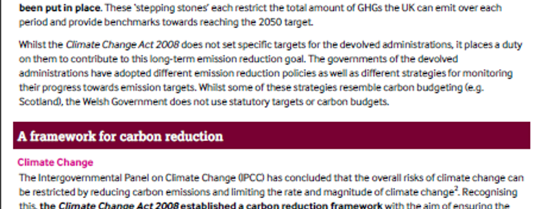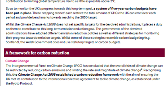 Mae’r Hysbysiad Hwylus ar Gyllidebau Carbon yn amlinellu beth ydynt a sut y maent yn cael eu defnyddio o fewn y DU ar hyn o bryd i fesur cynnydd.