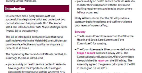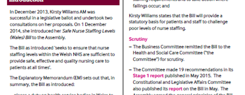 Mae'r ddogfen hon yn nodi'r prif newidiadau a wnaed i'r Bil Lefelau Staff Nyrsio (Cymru) (‘y Bil’) yn ystod trafodion Cyfnod 2. Yn ystod y trafodion hyn, newidiwyd enw byr y Bil o’r Bil Lefelau Diogel Staff Nyrsys (Cymru) i’r Bil Lefelau Staff Nyrsio (Cymru) .