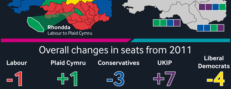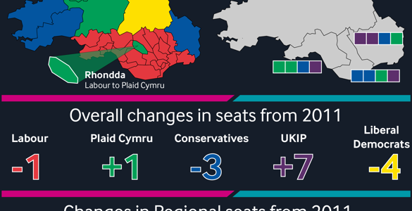 Mae cyfansoddiad gwleidyddol Cymru wedi newid yn sgil Etholiad y Cynulliad 2016. Dyma nifer y seddi a enillwyd gan bob plaid yn yr etholiad hwn a'r newid ers 2011: