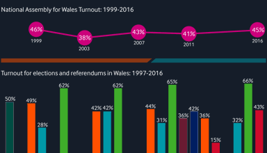 Mae'r ffeithlun hwn yn ceisio dangos canlyniadau'r etholiad yng Nghymru o