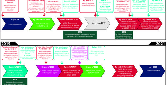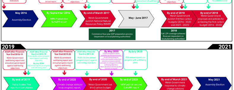 Fel yr eglurwyd yn y ffeithlun, arweiniad yw'r llinell amser ac ni fwriedir iddo fod yn ddatganiad diffiniol. Y nod yw iddo helpu Aelodau a rhanddeiliaid i ystyried sut y gallai'r gwahanol ddyletswyddau yn y ddeddfwriaeth gyd-fynd â'i gilydd dros y deng mlynedd nesaf. Mae'n seiliedig ar y wybodaeth orau sydd ar gael inni ar hyn o bryd, a gallai newid eto wrth i benderfyniadau gael eu gwneud ynglŷn â gweithredu'r ddeddfwriaeth, ac wrth i Fil yr Amgylchedd barhau ar ei daith drwy'r Cynulliad.