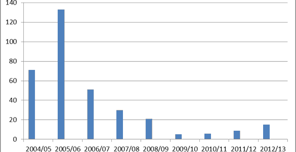 Mae Cyfoeth Naturiol Cymru (yn flaenorol, Asiantaeth yr Amgylchedd Cymru) yn monitro nifer y ceisiadau cynllunio a ganiateir gan awdurdodau cynllunio lleol, yn groes i'w gyngor, ar gyfer datblygiadau mewn ardaloedd lle mae perygl o lifogydd (er nad yw'r holl gynlluniau hyn o reidrwydd yn cael eu gwireddu). Er bod nifer yr achosion wedi gostwng yn sylweddol o'r uchafbwynt a welwyd yn 2005/06, mae arwyddion o gynnydd bach wedi dod i'r amlwg dros y blynyddoedd diwethaf.