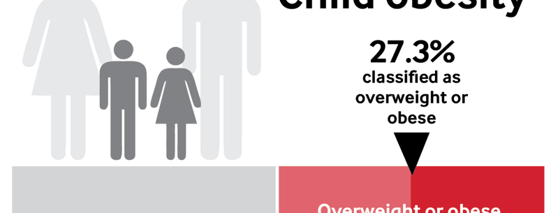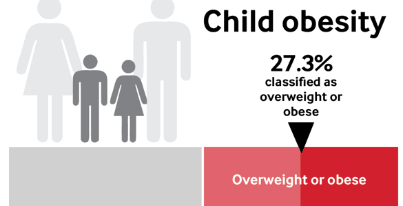 27.3% o blant dros bwysau neu'n ordew.