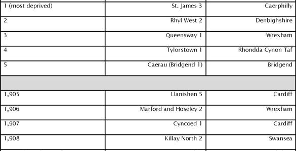 Ardaloedd mwyaf amddifad a lleiaf amddifad