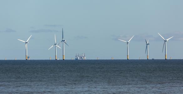 - Gwynt y Môr, sy’n fferm wynt 576MW ar y môr (sefydlog ar y gwaelod) sydd wedi'i lleoli 14km o arfordir gogledd Cymru, ac yn cwmpasu tua 79km². Gall gynhyrchu digon o ynni glân i bweru 400,000 o aelwydydd, sy'n cyfateb i dorri 1.7 miliwn tunnell y flwyddyn o allyriadau CO₂. Mae Ystad y Goron wedi dyfarnu estyniad yn ddiweddar i'r safle presennol, sef Awel y Môr erbyn hyn.