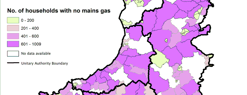 Mae'r map yn dangos yn glir fod gan y rhan fwyaf o gartrefi fynediad at y prif rwydwaith nwy yn yr ardaloedd trefol yn y gogledd a'r de, tra bod gan lawer o ardaloedd gwledig Cymru nifer uwch o gartrefi sydd heb fynediad at y prif rwydwaith nwy. Ar wahân i'r rhan fwyaf o ganolbarth a gorllewin Cymru, a llawer o ogledd Cymru sydd i ffwrdd o'r arfordir a Sir y Fflint/Wrecsam, ymhlith yr ardaloedd eraill sy'n sefyll allan mae ardaloedd gwledig o Fro Morgannwg, Sir Fynwy a'r Gŵyr. Nid yw'r tair ardal olaf hyn yn ardaloedd sy'n gysylltiedig yn draddodiadol â lefelau uchel o dlodi.