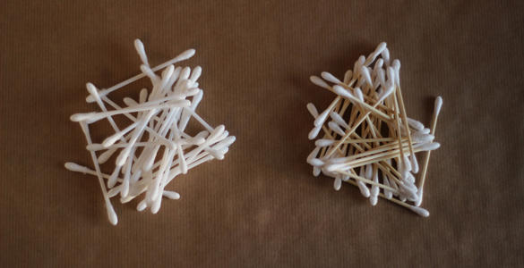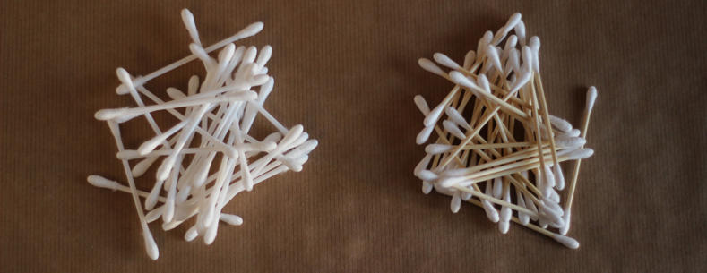- ffyn cotwm sydd â choesau plastig;