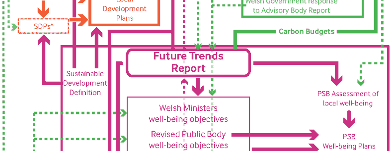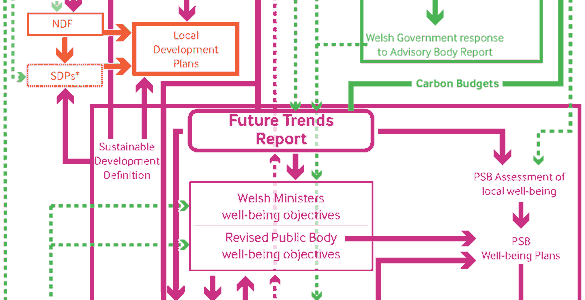 Y gorgyffwrdd rhwng Deddf Llesiant Cenedlaethau'r Dyfodol (Cymru), Deddf Cynllunio (Cymru) a Bil yr Amgylchedd (Cymru);